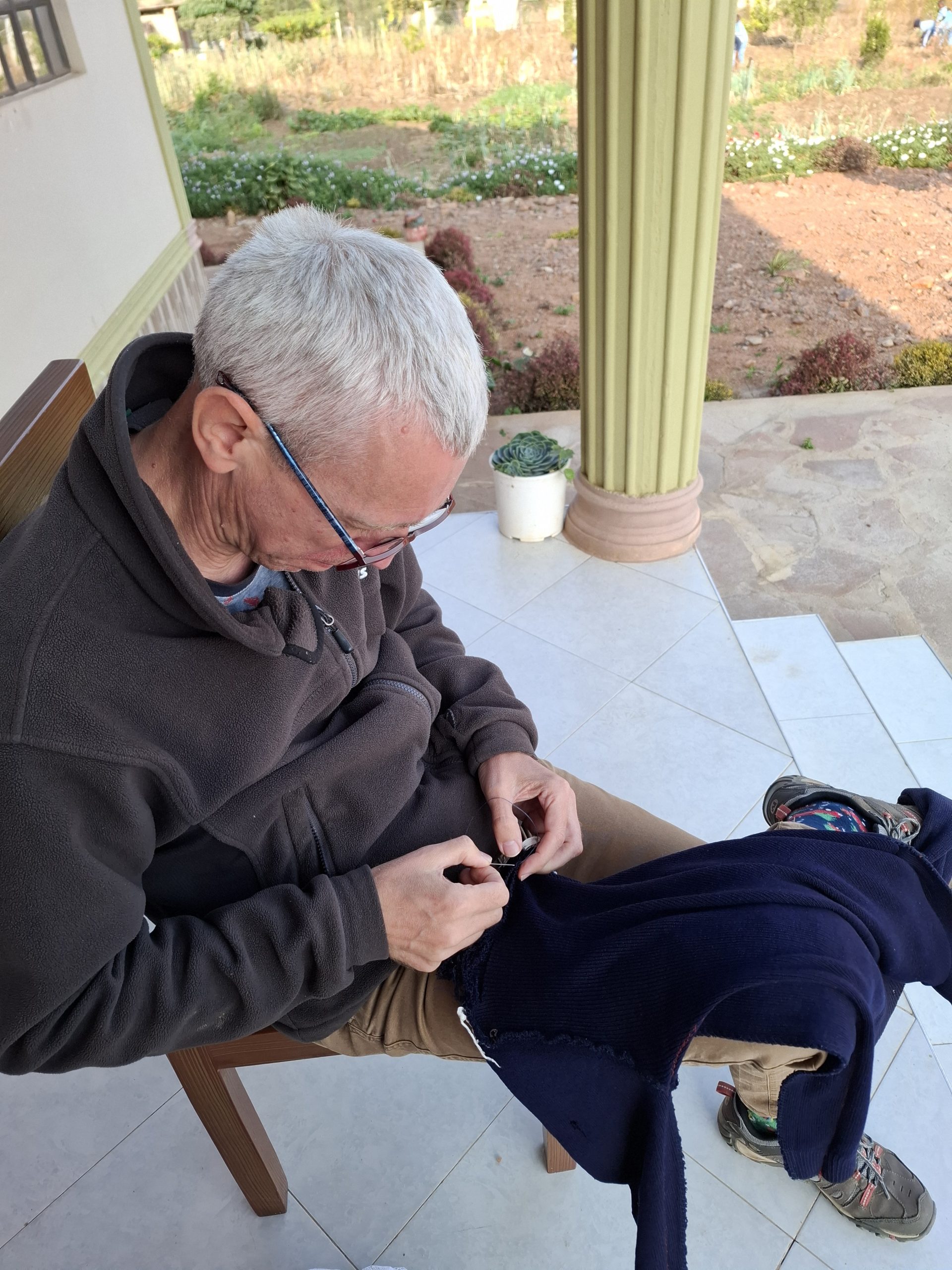 W wolnych chwilach Paweł cerował zniszczone ubrania wychowanków internatu