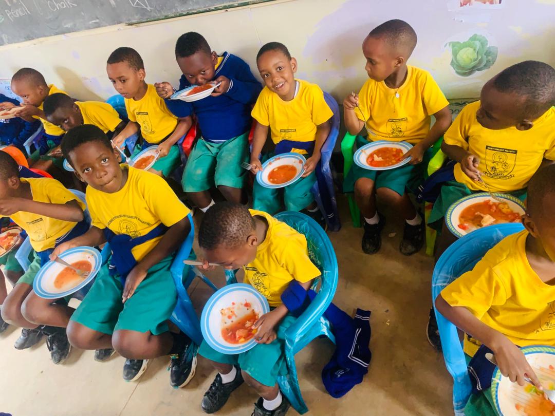 Obecnie szkoła cierpi na brak murowanej jadalni. Posiłki są przygotowywane w prowizorycznej kuchni i przenoszone do namiotów na dziedzińcu.