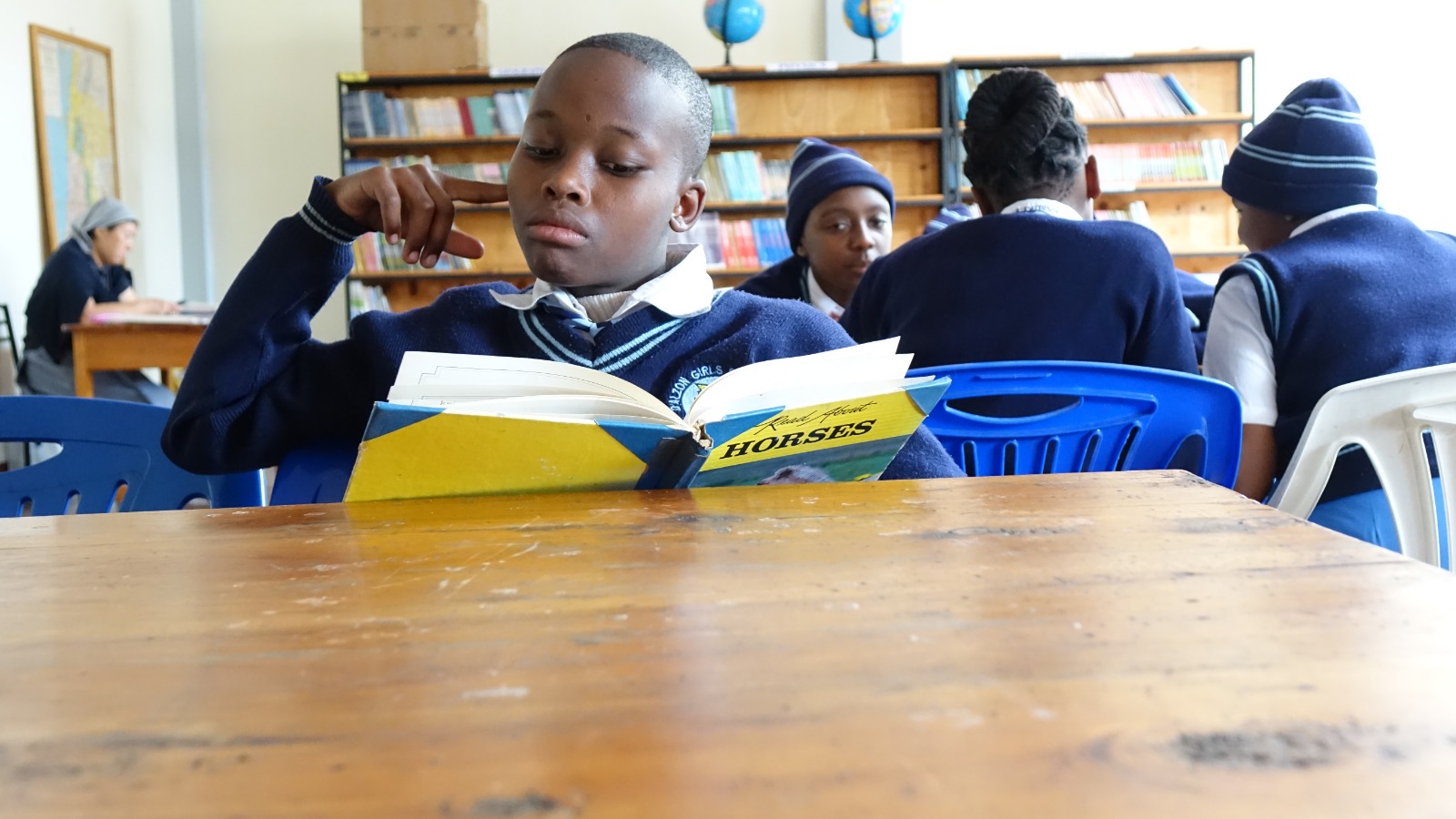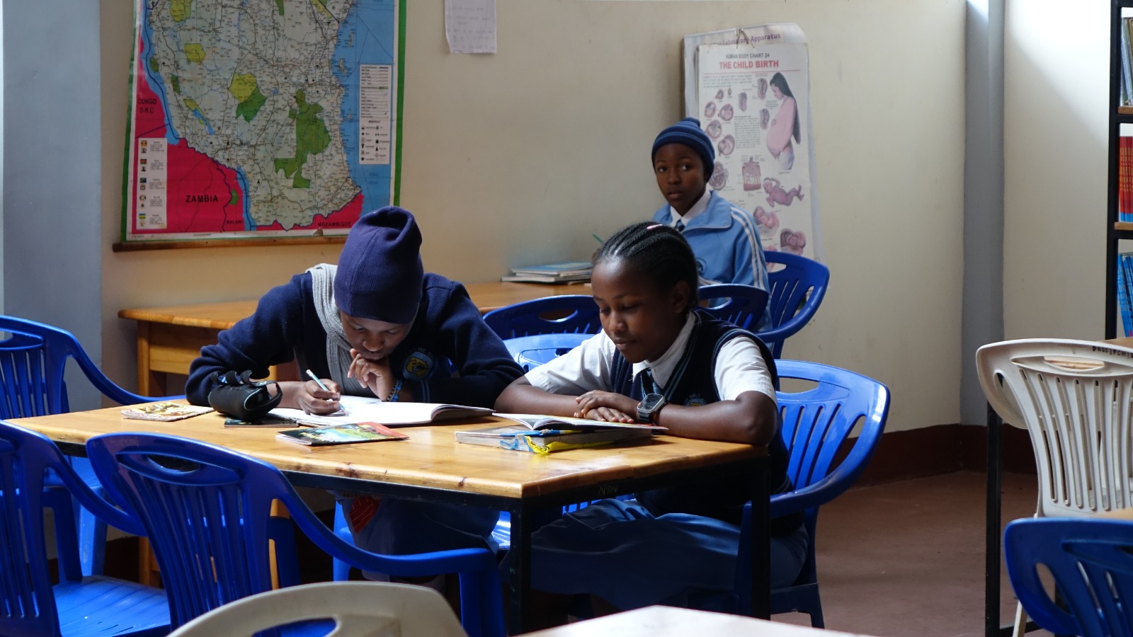 W Chekereni własny podręcznik to luksus. Uczennice korzystają z książek rotacyjnie, bo egzemplarzy jest zbyt mało, by każda mogła mieć swój