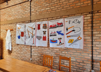 Mamy też szwalnię, gdzie pod okiem doświadczonej krawcowej - Yvonne - podopieczni szyją ubrania, plecaki, torby. Mają dostęp do maszyn do szycia i uczą się rękodzieła. Ich wyroby są starannie wykonane, więc udaje nam się je sprzedawać. Te wszystkie rękodzielnicze cuda można kupić między innymi w Amakuru - sklepie charytatywnym Pallotyńskiej Fundacji Misyjnej Salvatti.pl. Dzięki temu osoby, nawet nie w pełni sprawne, mogą być samowystarczalne finansowo. W innym warsztacie z wielką starannością tkamy serwetki. Przy kolejnym stole nasi artyści wyplatają serwetki z liści bananowca i trawy. Wkrótce te wyroby także trafią do Polski.